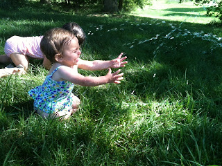 Today, with temps around 90, Ellie happily broke out the sprinkler and we all had some fun in the backyard. Here are a few pics, and a cute video of Lucy's first sprinkler experience...